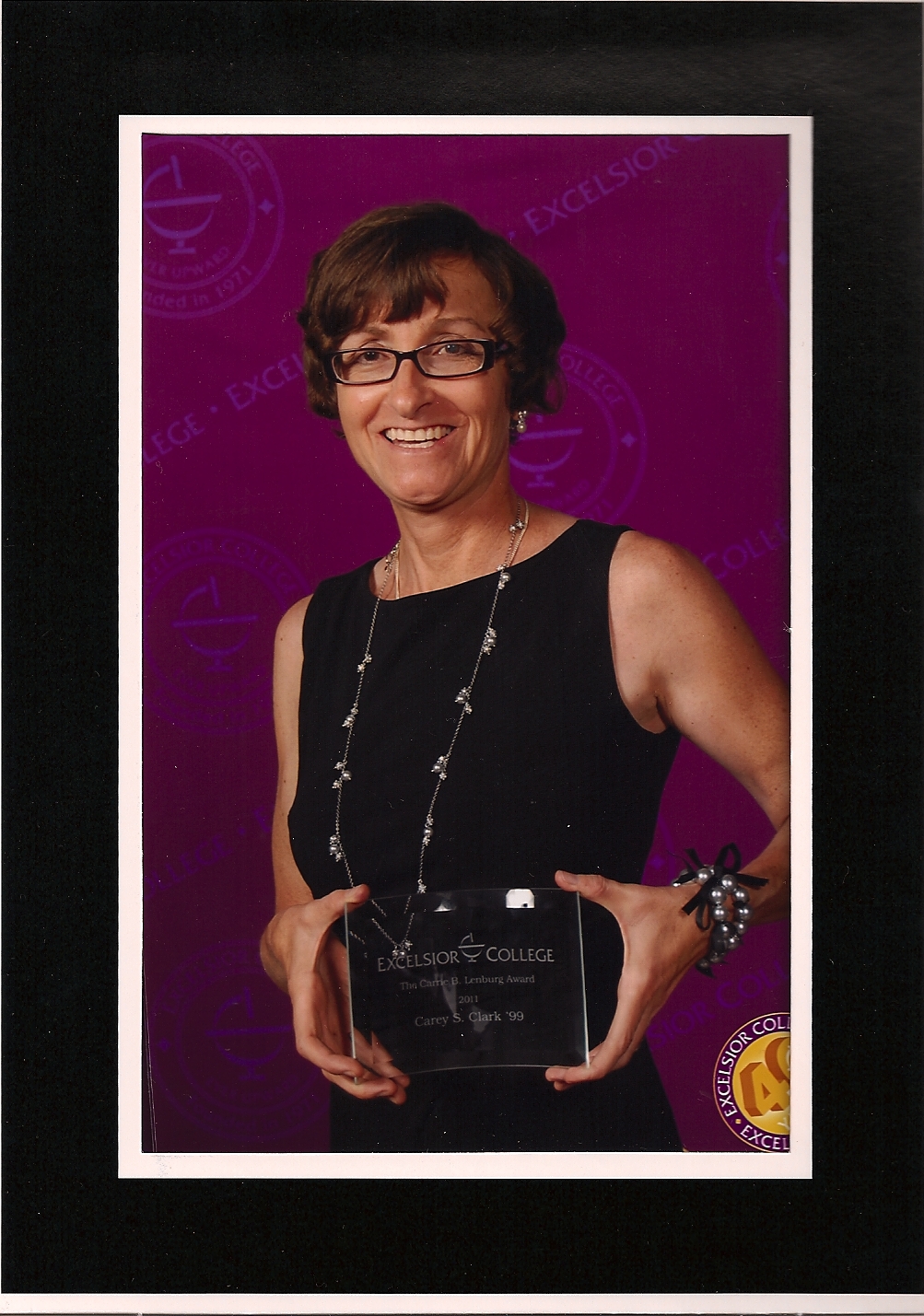 Last week I was honored to receive the Carrie Lenburg award from Excelsior College in Albany New York. The Carrie B. Lenburg Award is